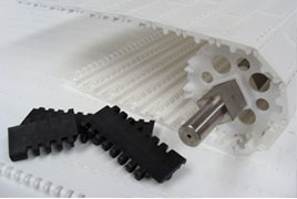 塑料模組網帶又稱為塑料模塊帶、塑料鏈板、模組網帶,是由塑料模塊和插銷組合拼裝而成,通過匹配的鏈輪做驅動。